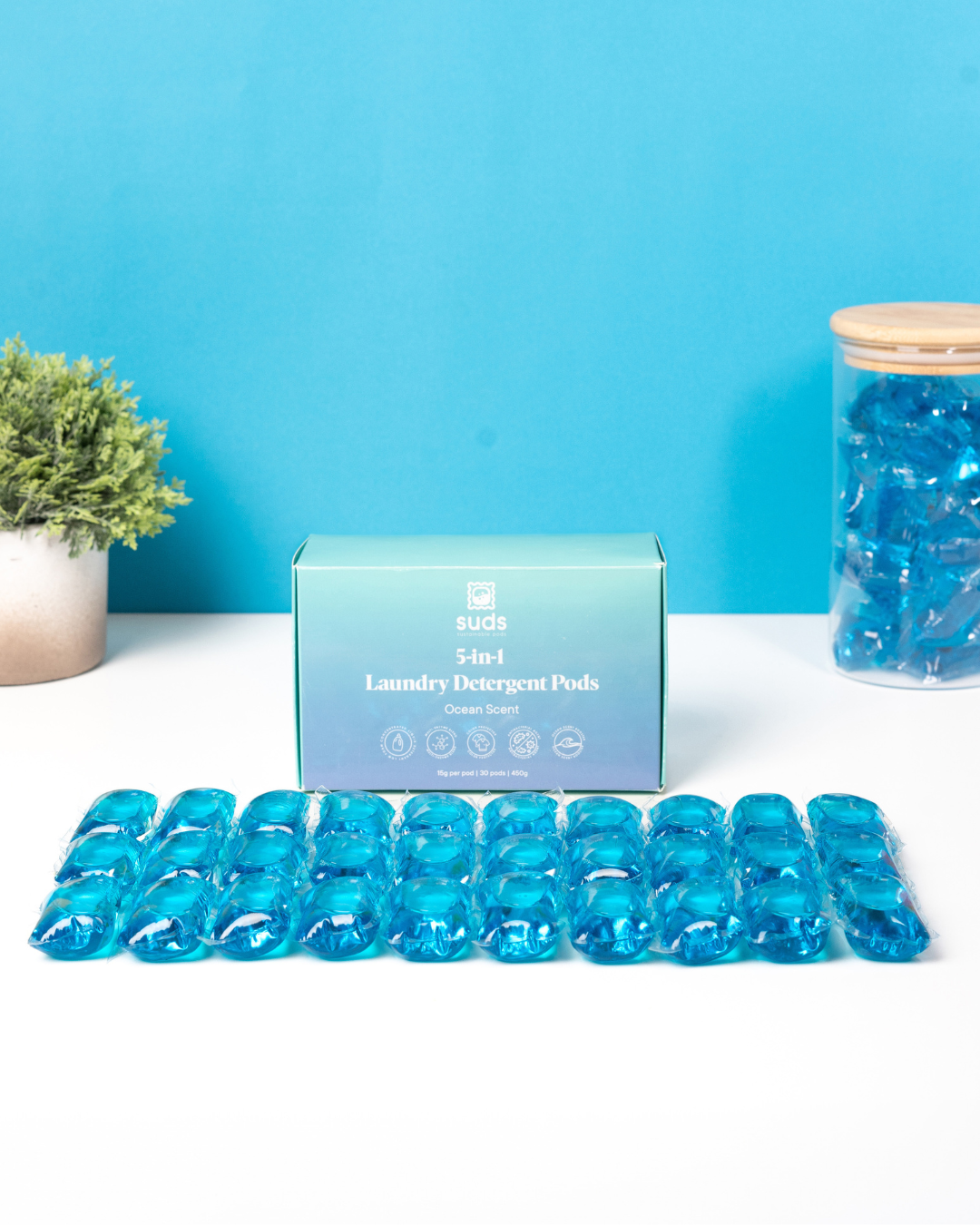Suds Pods are 100% water-soluble and designed to reduce plastic waste without sacrificing cleaning power. The Pods dissolve completely in water and donβt leave behind any microplastics.